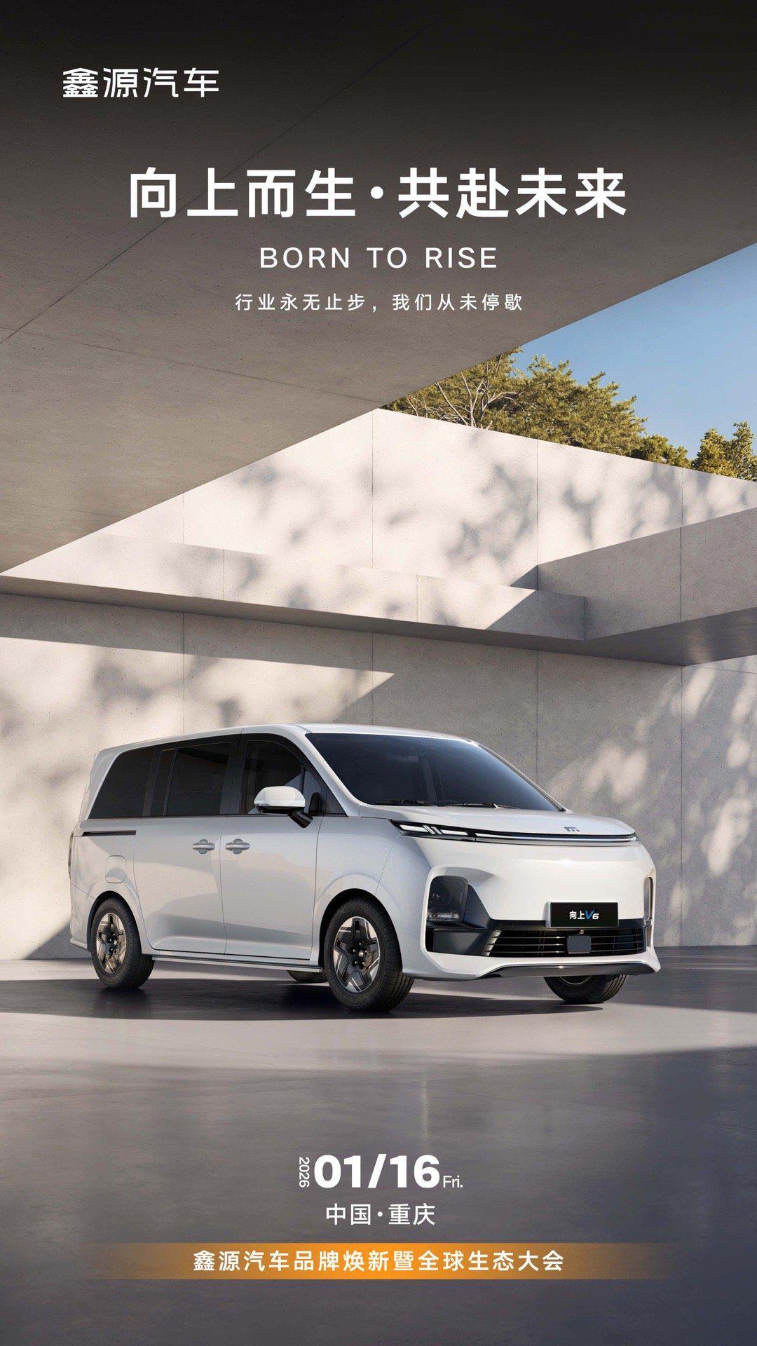 鑫源汽车还公布了品牌焕新后的首款车型“向上 V6”,主打商用家用兼得,该车将于 2026 年内上市。