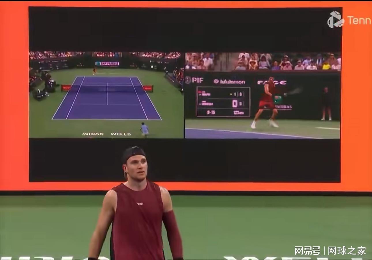 英国帅哥在发球局0-15时,俄罗斯名将回了一个贴近底线的深球,德雷珀觉得出界了便做了一个摊手的抱怨的动作。由于系统没有呼报出界,两人只能继续打,最后在七拍左右后以梅德韦杰夫回球下网而告终。